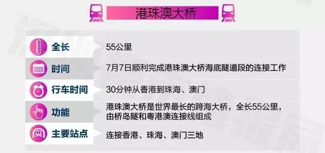 2017年年底,将预计正式建成通车,届时珠海至香港的路程将缩短至半小时以内,实现珠海、澳门与香港的陆路对接,形成“1小时交通圈”。