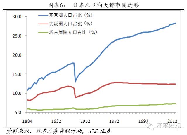 在日本城市化进程中,人口持续向都市区集聚,人口迁移从向“三极”集中转为向“一极”集中。