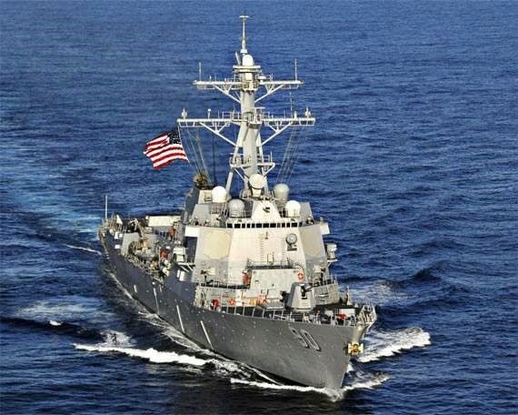 美国海军驱逐舰再次靠近南海中国岛礁。