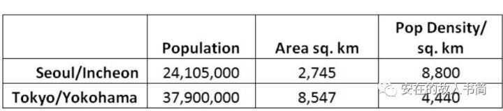 在首尔和东京的城市中心,人口密度显著提高,例如,首尔特别市的人口密度是17002人/k㎡,东京特别行政区的人口密度是14950/k㎡。除此之外,特别区域(市中心)的人口密度还会在工作周期间显著增加。