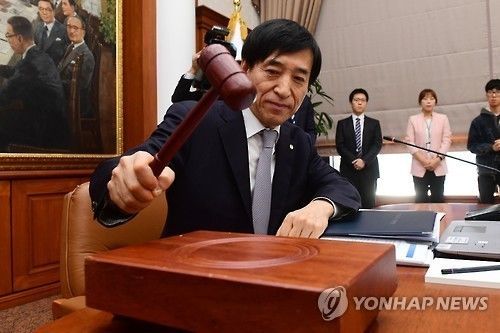 ▲资料图片:2016年11月11日,韩国央行行长李柱烈召开金融货币委员会全体会议。(韩联社)