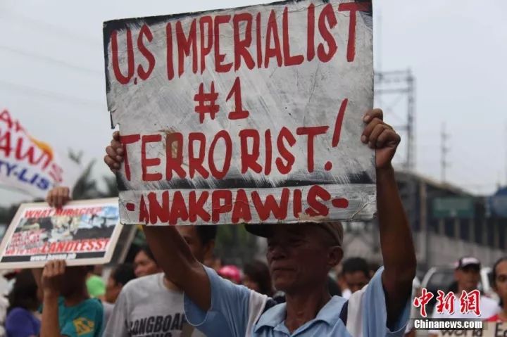 菲律宾民众高举“美国帝国主义是头号恐怖分子”的标语
