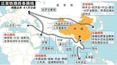 当然,若要把这种资本和实力转变为现实,就需要中国在亚欧非大陆上勾勒一张庞大的交通网络。这就是为何中国在亚欧非大路上大搞铁路建设、高铁建设、管道建设的真正原因。
