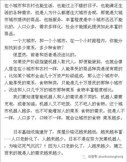 前面讲,人越多,平均越富,这样形成的市场越大,越值得使用机器人工智能和机器人,而人少,反而不值得。
