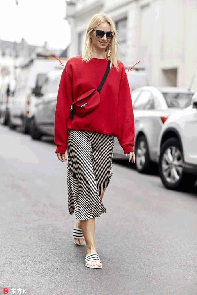 还有就是,运动风+女人味儿的混搭才吸眼球。穿卫衣就不要穿运动鞋了,你真以为你是去健身的?搭配一双小高跟,休闲职场通杀~~