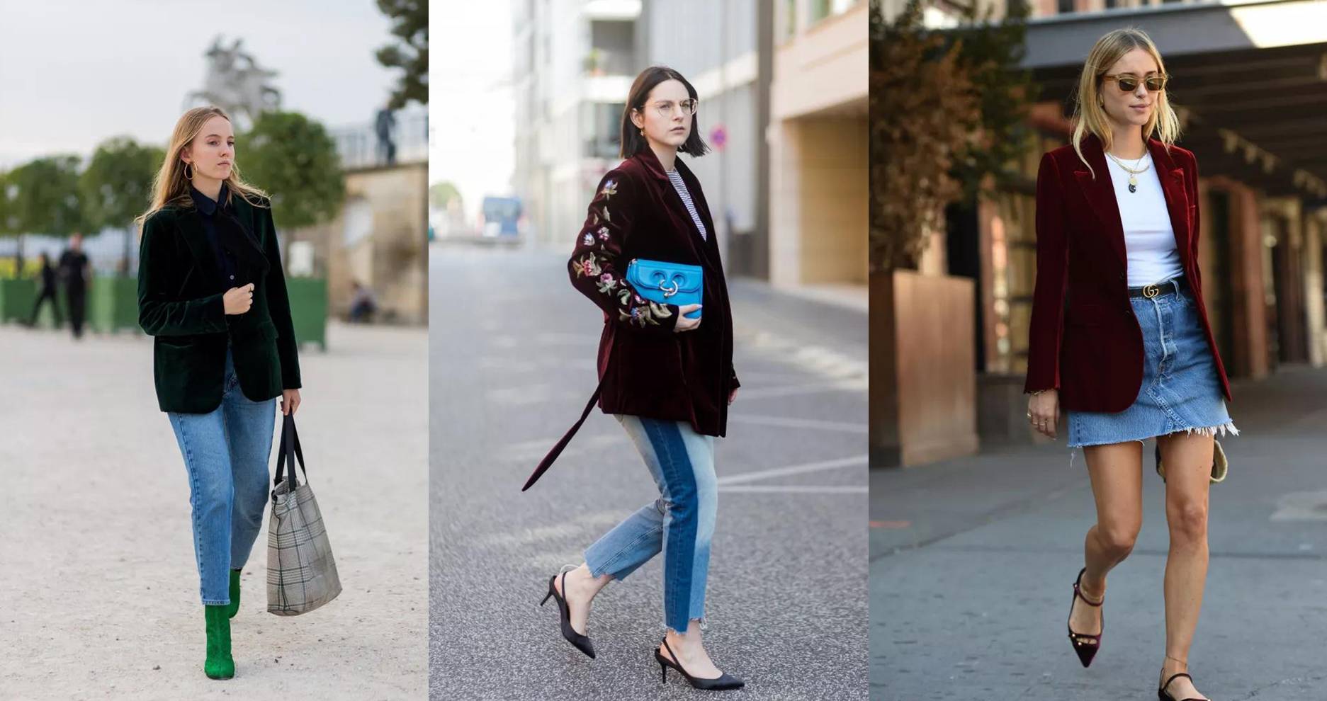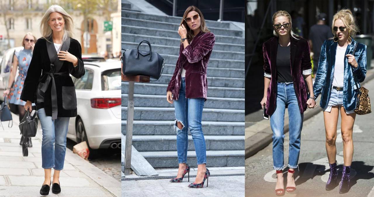 比如说:丝绒+牛仔,柔情又帅气的结合