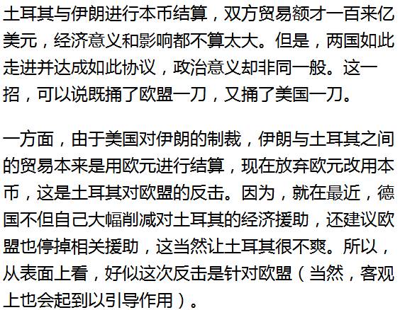 但是这一刀实际上更是狠狠地插在了美国身上,因为伊朗是美国的宿敌,土耳其高调和伊朗发展关系,并且很可能形成伊朗、土耳其、伊拉克和叙利亚的联盟,这对美国中东战略上非常不利。