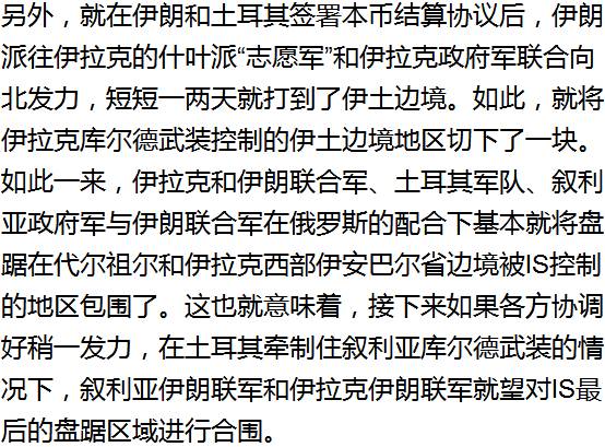 笔者之前分析过,代尔祖尔既是美俄谁掌握主动的关键节点,又是叙利亚和伊拉克内部格局的关键节点。如果叙利亚政府军可以拿下代尔祖尔,伊拉克政府军可以消灭掉伊安巴尔省的IS,那么接下来就该是摊牌时刻了。美俄到底是否继续较量下去,叙利亚内战到底是否继续打下去,伊拉克政府军和库尔德自治区是否开启内战,都可能在代尔祖尔之战结束后初露端倪。