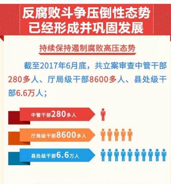 下一步反腐如何推进?十九大报告明确指出,当前,反腐败斗争形势依然严峻复杂,巩固压倒性态势、夺取压倒性胜利的决心必须坚如磐石。要坚持无禁区、全覆盖、零容忍,坚持重遏制、强高压、长震慑,坚持受贿行贿一起查,坚决防止党内形成利益集团。