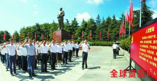 7月7日,韶山毛泽东铜像广场,党员们举起右手,庄严宣誓。当天,湖南省交通水利建设集团有限公司开展践行“两学一做”,重温入党誓词主题活动,100余名党员参加。姚跃初 姜引利 摄影报道