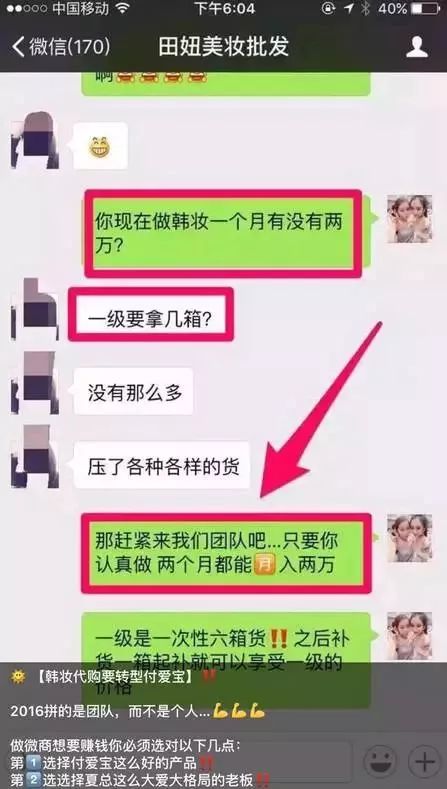 后面慢慢地声音弱了。一问,听说是货卖不出去。然后我问,那后面怎么办呢?她告诉我说,一个什么姐姐让她多招几个代理,把货发出去,还可以收每人200元的代理费。