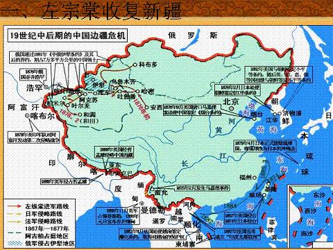 直隶总督李鸿章就力阻出兵西北,他认为“新疆不复,于肢体之元气无伤;海疆不防,则腹心之大患愈棘”。