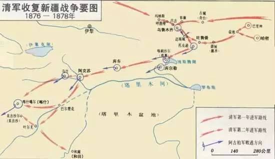 1876年8月,战役打响。左宗棠以“先北后南”的策略,历时一年半,将肆虐西北十二年之久的阿古柏彻底击溃,新疆收复。