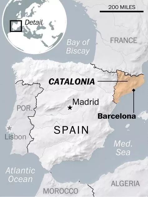 ▲加泰罗尼亚地理位置示意图(《华盛顿邮报》网站)