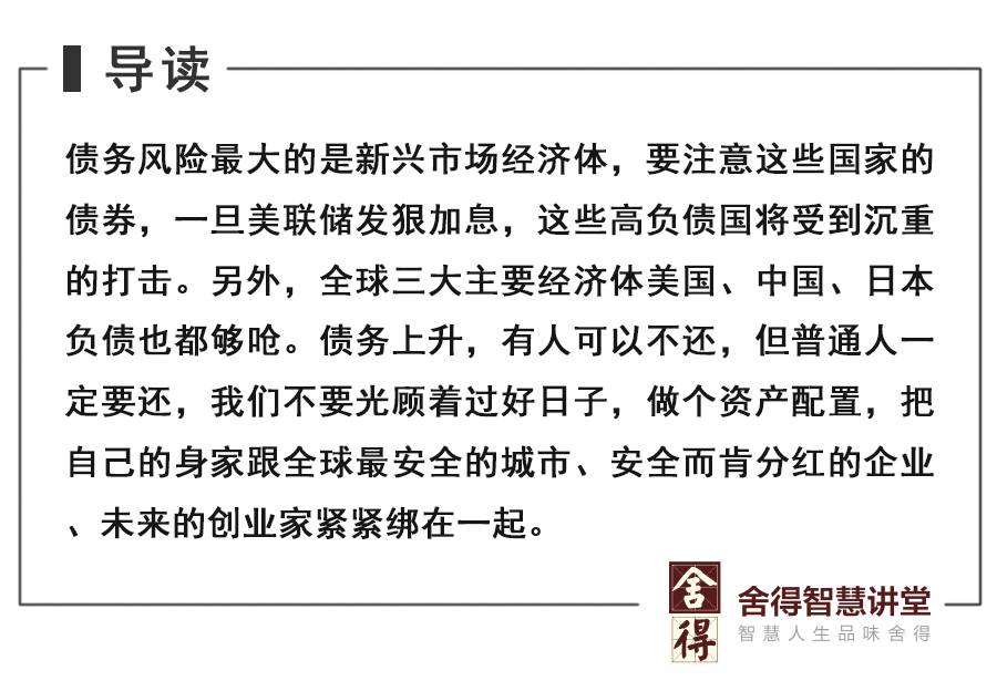 债务上升,有人可以不还,但普通人一定要还。此时我们不要光顾着过好日子,做个资产配置,把自己的身家跟全球最安全的城市、安全而肯分红的企业、未来的创业家紧紧绑在一起。