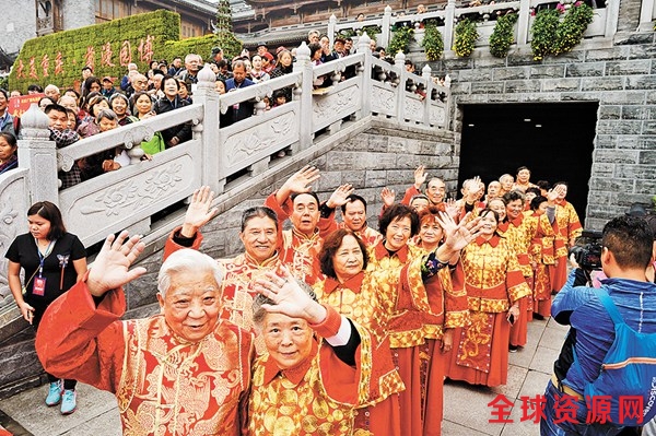 11月4日,重庆园博园,老人们着中式喜服参加金婚祝福礼。记者 崔力 摄