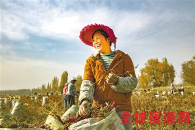 11月5日,新疆巴音郭楞蒙古自治州焉耆县的群众正在采摘辣椒。目前,焉耆县的辣椒种植面积由原来的不到5万亩发展到60万亩,实现了农业增效、农民增收,巴州已成为全球主要的色素辣椒种植基地之一。(史家民 摄)