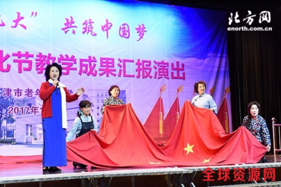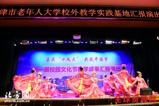 这天,天津市老年人大学校园和礼堂异常热闹,老年学员们手执各种乐器,身着鲜艳、风格各异的演出服装,齐聚一堂、欢声笑语,一派喜庆热闹的节日景象。“喜庆十九大共筑中国梦——第一届校园文化节教学成果汇报演出”即将开场。