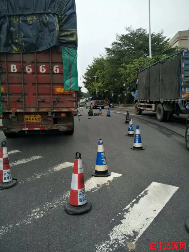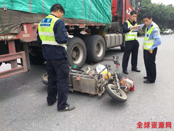 在上一起事故发生约两小时后,在南宁市昆仑大道往秀厢大道邕宾立交桥上,也发生一起货车与电动车相撞事故!