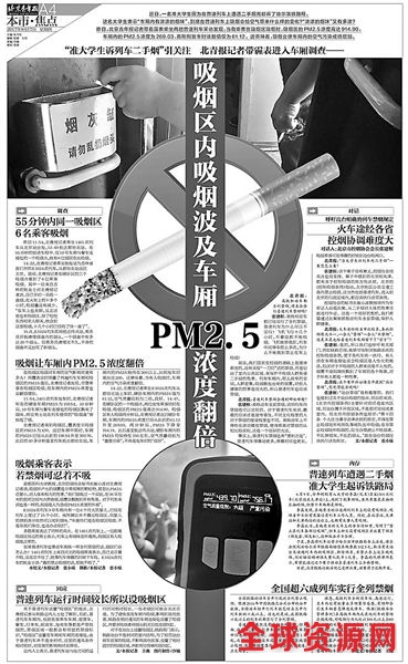 本报今年8月17日刊发的《吸烟区内吸烟波及车厢 PM2.5浓度翻倍》报道