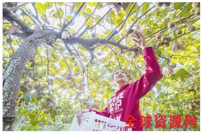 游客在奉新县赤岸镇万亩猕猴桃基地采摘猕猴桃。通讯员 陈昌力摄