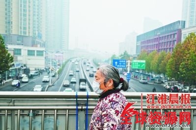 4日,在合肥东一环一座天桥上,一位市民戴着口罩出行。李福凯 摄