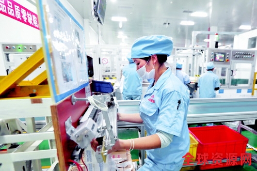 图为12月8日,一位当地贫困群众在卡布国际婴童用品产业园生产线上工作。