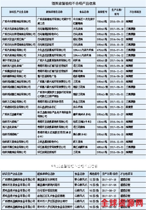 近期,广西食品药品监督管理局组织抽检酒类、肉制品等2类食品184批次样品,抽样检验项目合格样品155批次,不合格29批次。根据食品安全国家标准,个别项目不合格,该样品即判定为不合格产品。所有抽检样品遵循随机抽样原则。抽检酒类样品113批次,不合格23批次;抽检肉制品样品71批次,不合格6批次。各市、县(市、区)相关食品药品监管部门均对抽检中发现的不合格食品进行了依法处置。