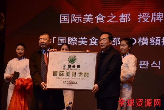 (长沙市接受“国际美食之都”授牌。)