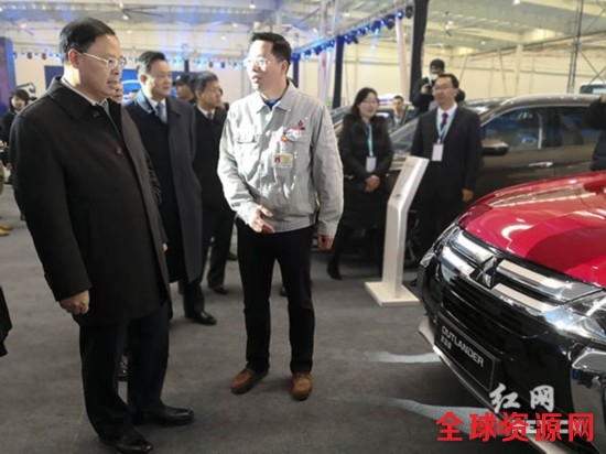 12月24日,张剑飞(左一)一行还参观了省内各主要整车生产企业在会场展示的标志性汽车产品。