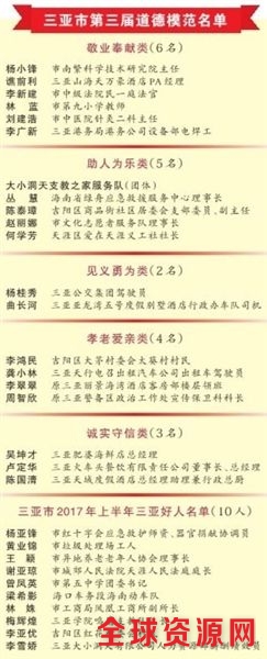(记者 周才源)德耀天涯,情暖三亚。12月27日下午,2017年三亚市第三届道德模范颁奖典礼在美丽之冠大剧院举行,授予杨小锋等20名同志“三亚市第三届道德模范”称号,杨亚锋等10名同志“三亚市2017年上半年三亚好人”称号。