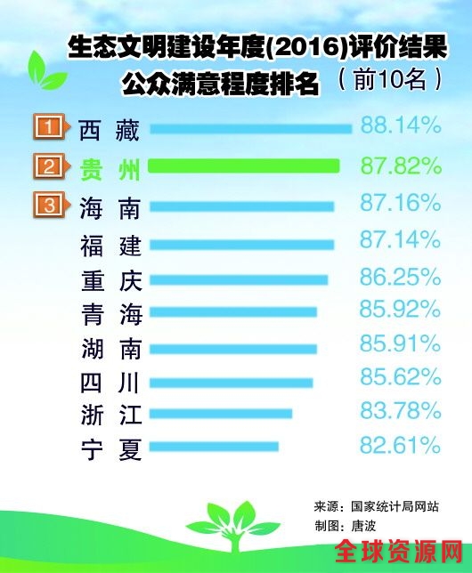 2016年生态文明建设年度评价,贵州的公众生态环境满意程度排名全国第2位,记者就此采访了省统计局、省发改委、省环保厅等部门。
