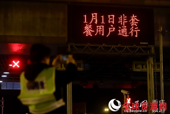 凌晨0:30分,记者驱车来到成渝射线高速公路G85主线收费站看到,收费站中间上方LED显示屏,滚动播放着“1月1日,非套餐用户通行绕城及到内环的射线,均按次收费”提醒字样。