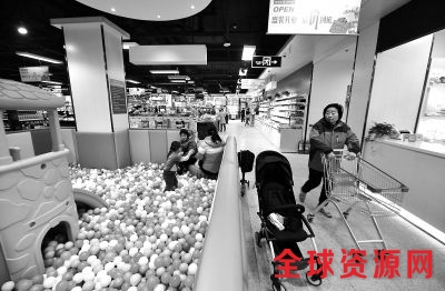 海淀首家社区商业e中心开业,在超市、菜市场等各种便民服务设施中间还有儿童娱乐活动区,为社区居民打造了一站式便民服务商业综合体。 本报记者 和冠欣摄