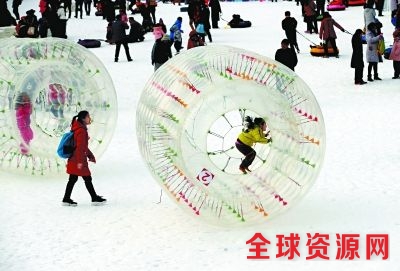 ▲紫竹院公园冰雪场,一个小姑娘开心地滚雪圈。本报记者 吴镝摄