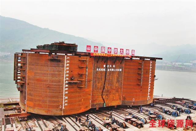 1月12日,在重庆长航东风船舶公司唐家沱港区,重达1200吨的钢围堰在船台斜架车托举下,稳稳滑向江中。这是长航东风公司为中国中铁大桥局承建的,也是目前主城最大的整体式钢围堰,在通过水下密性测试后,它将用于渝中区南纪门轨道专用桥桥墩建造。