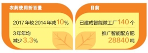 3年来,全省农药使用折百量年均减少3.3%,连续3年实现农药使用量负增长,提前实现农业部下达的目标任务;在“化肥使用量零增长”行动中,我省紧扣提质增效转方式、稳粮增收可持续工作主线,不断创新具有云南特色的化肥减量增效技术模式,其中我省智能化肥微工厂建设、水肥一体化技术进入全国先进行列。截至目前,全省化肥使用结构比例明显优化,氮磷肥比重降低,施肥总量增速和施肥强度出现双减的良好态势。