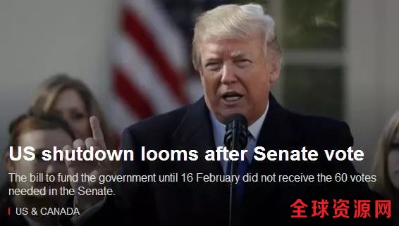 美国联邦2016-2017年度预算去年10月到期,两党未能就新财年预算达成一致,只同意提高债务上限3个月,之后去年12月国会两次通过短期预算案,1月19日就是短期预算案的最后一天。