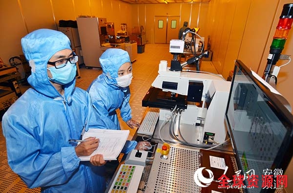 由北方电子研究院安徽有限公司投资打造的EMCCD(电子倍增图像传感器)生产线正式投产运营,在国内首次实现了电子倍增图像传感器的量产。蚌埠市北方通用MEMS核心器件产业基地技术人员在光刻间进行图形校对 蚌埠日报 刘晨摄
