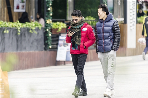 昨日虽有阳光出现但气温仍低,市民出街要包裹严实 记者 段柳健 摄