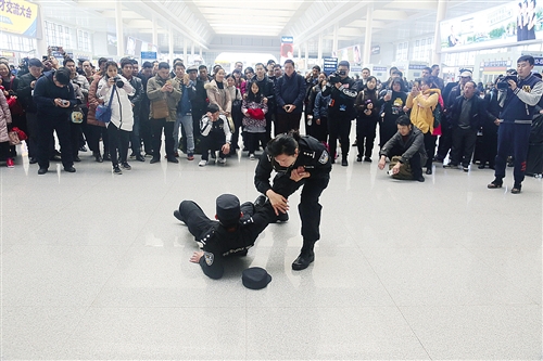 为了确保旅客平安回家,尤其是女性乘客在遇到危险时能够自救,在南宁东站,南宁铁路公安处特警现场传授防身术。抓腕解脱、抓衣领解脱、双手锁喉解脱、抱腰解脱……英姿飒爽的女特警化身动作指导,详细解说示范,并与旅客现场互动,亲身教学,让旅客在短短十几分钟内,就能轻松掌握这些防范技巧。