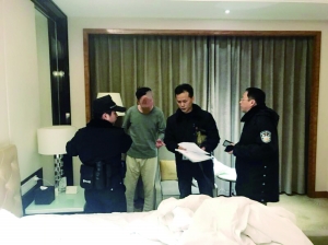 法院执行人员在宾馆将马某(左二)抓获 玄武法院供图