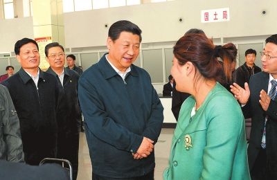 2014年3月17日,习近平总书记在兰考县为民服务中心与群众亲切交谈。⑨3本报记者杜小伟摄