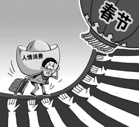 张志新说,他们已经三年没回家过年了,今年的“归途”特别轻松,因为“再也不用担心超过负担的‘人情钱’了”,“2008年,光亲戚结婚、生日、乔迁的宴请加起来就有6家,在外辛苦一年,回来口袋就空了一半,真的很苦恼。”张志新说,由于害怕这些“人情债”,2014年开始,他和妻子带着小孩躲在外面不回乡过年。