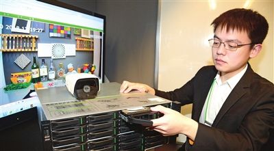 近日,天津科技企业天地伟业技术有限公司研发的超融合硬盘录像机正式问世,该设备是全球首个将后端设备融合在一起的硬盘录像机,能容纳320个摄像头1个月的存储量,目前该产品上市仅一个月就已远销伊朗、土耳其等国家。(记者 张磊 摄)