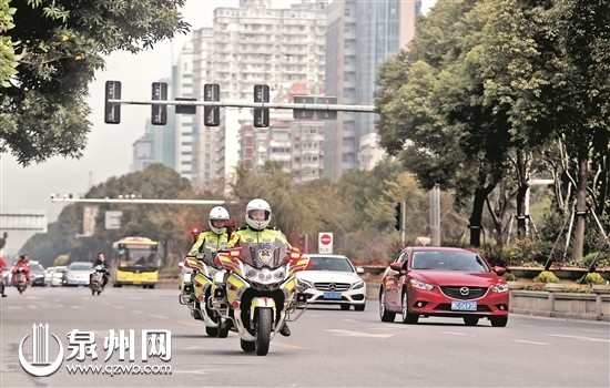 铁骑在市区刺桐路巡逻 (陈小阳 摄)