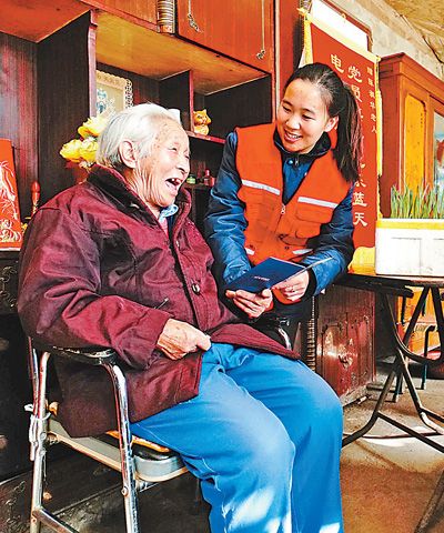 国网北京市电力公司开展24小时监控,确保“煤改电”用户温暖过节。图为工作人员正在顺义区东水泉村村民陈淑华老人家了解采暖效果。本报记者 贺 勇摄