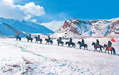 春节期间,武警新疆边防总队吉根乡边防派出所官兵联合牧民护边员坚守在平均海拔超过3000米的边境线,守护祖国的平安。张 佳 艾来提江·吾甫尔摄影报道