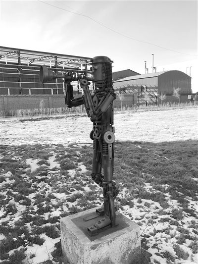 云海公司厂区内用拆解的废旧零件制造的机器人。