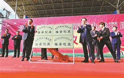 昨天上午,北京市援助雄安新区办学项目启动仪式在雄安新区容城小学举行,北京市朝阳区实验小学雄安校区、北京市第八十中学雄安校区、北京市六一幼儿院雄安院区、北京市海淀区中关村第三小学雄安校区等四所学校正式挂牌成立。此举标志着北京市教育援助雄安首个项目启动实施。